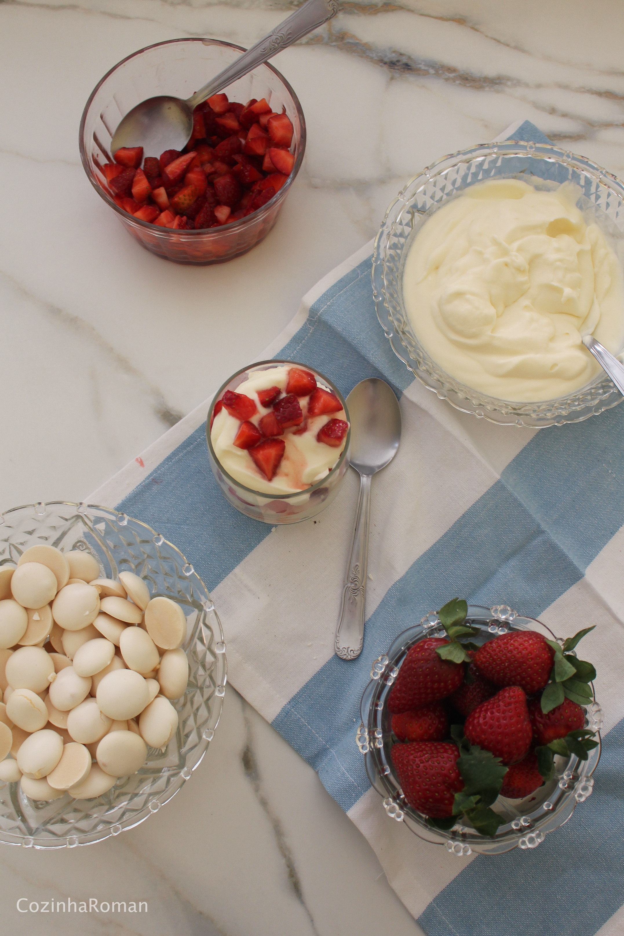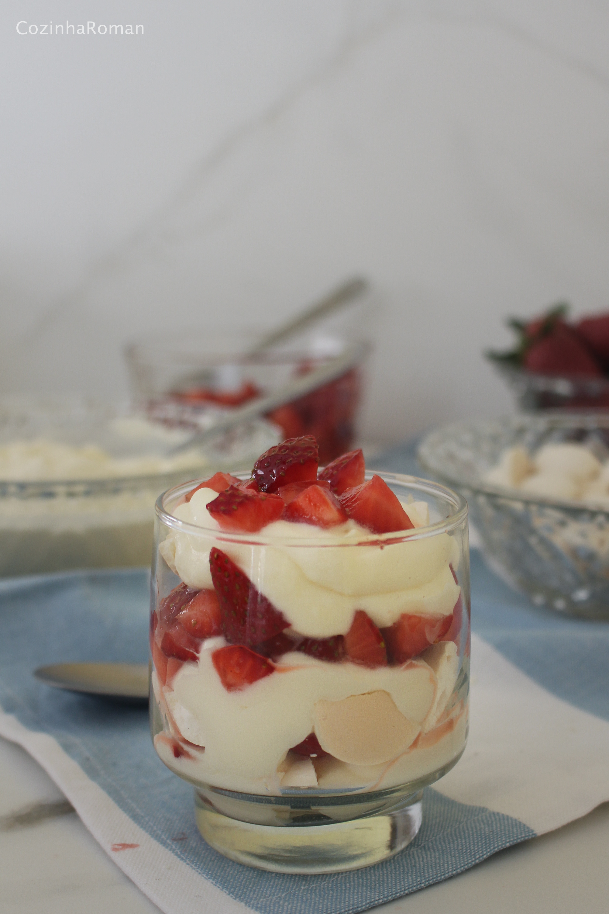 Atualização: refiz o Eton Mess recentemente e acabei gostando das fotos, que são as que estão nesse post agora. Dessa vez fiz com os suspiros, o que garantiu uma sobremesa um pouco mais leve. Também não amassei os morangos, já que eles estavam bem maduros apenas piquei em cubinhos. E por último, servi porções individuais em copinhos de vidro.