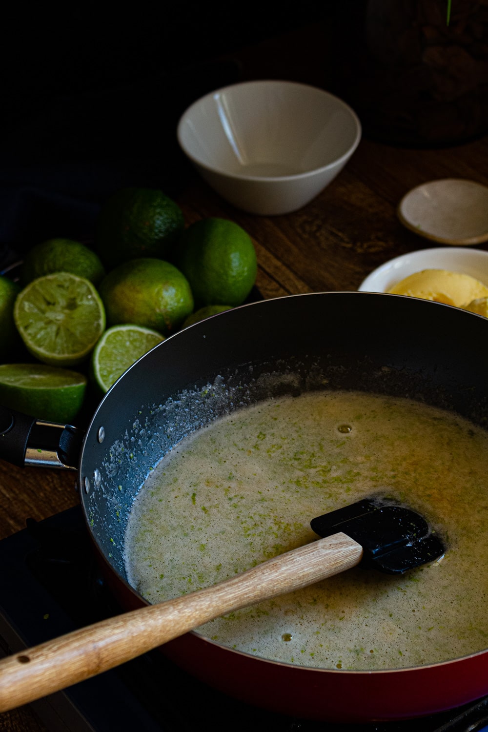 Tá, eu menti. Dá pra fazer curd com várias frutas. Mas o mais comum é usar cítricos, e a fruta cítrica mais comumente usada é o limão siciliano. Daí o nome, em inglês, de lemon curd. Então pra ser totalmente sincera, o que tá nas fotos seria um lime curd, ou um curd de limão tahiti. Mas sim, dá pra fazer com mexerica, laranja, maracujá (delícia!), morango, amora…