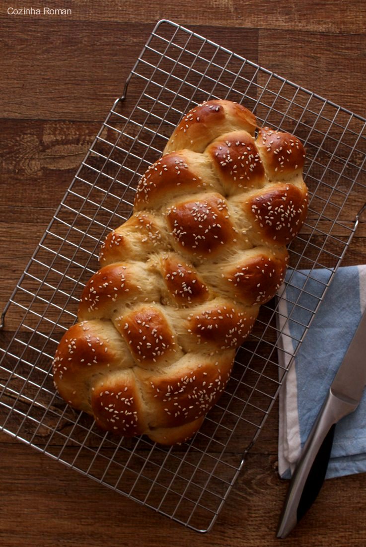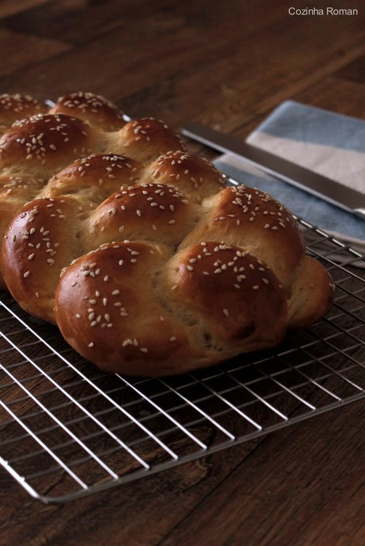 Modele os pães em seguida. Essa quantidade de massa dá para duas tranças, mas vale fazer pão de forma ou modelar pequenos pãezinhos. Misture a gema com o café, isso vai ajudar o pão a corar bem, e pincele os pães. Cubra com o gergelim e deixe descansar por mais 30min. A massa ainda vai crescer bem. Depois é só levar no forno a 230° ou até que doure.