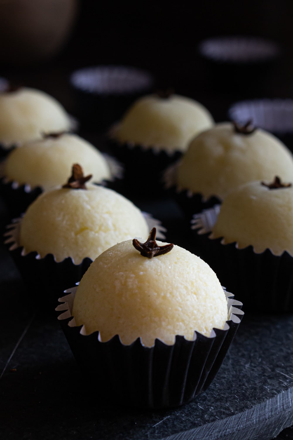 - Enrole os docinhos, coloque em forminhas e coloque um cravo no topo de cada um. Ou sirva vários juntos em uma taça.
