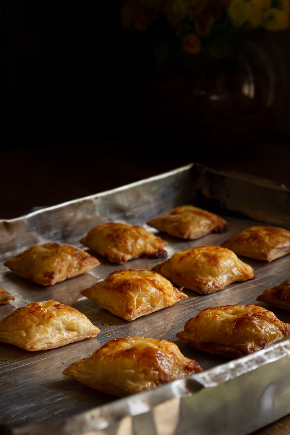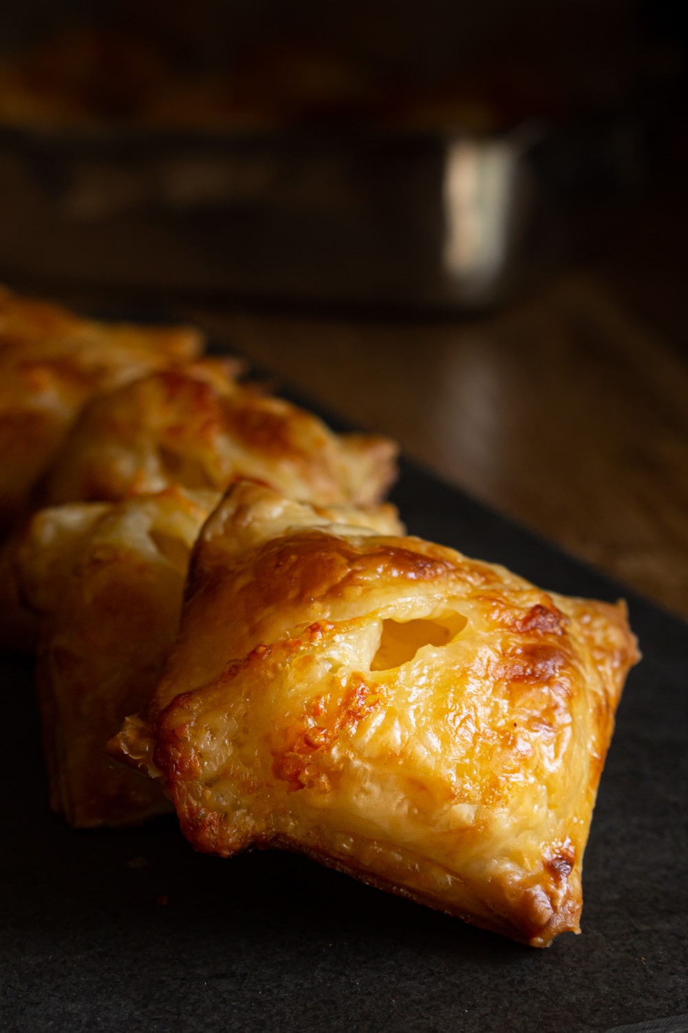 Puffs de muçarela que são apenas quadradinhos de massa folhada recheados com queijo!