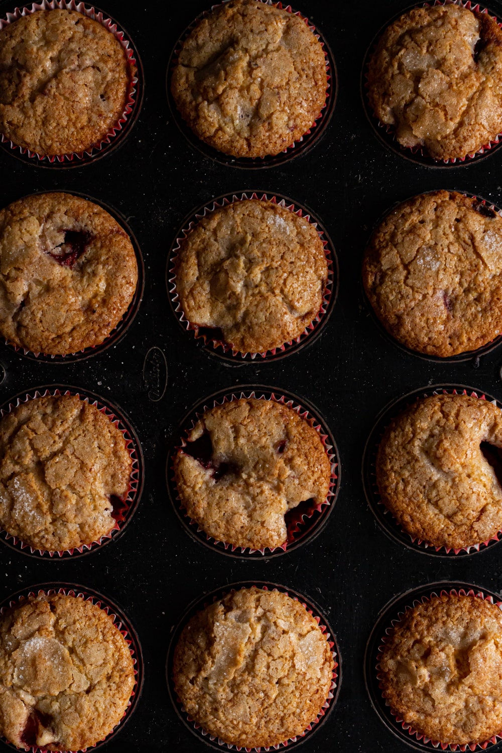 Atualização: em 2022 gravei um vídeo com o passo a passo dessa receita, mas com duas pequenas alterações. Os muffins de amora viraram muffins de morango, que estavam bem mais em conta no mercado, e o açúcar com canela do topo virou açúcar cristal puro, que dá uma casquinha mais crocante.