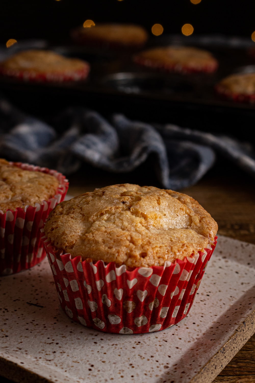 Muffin: coisa rápida, misturou tudo, tacou o recheio (frutas/nozes/chocolates/etc) na massa mesmo e colocou pra assar. Normalmente servido no café da manhã ou como lanche.