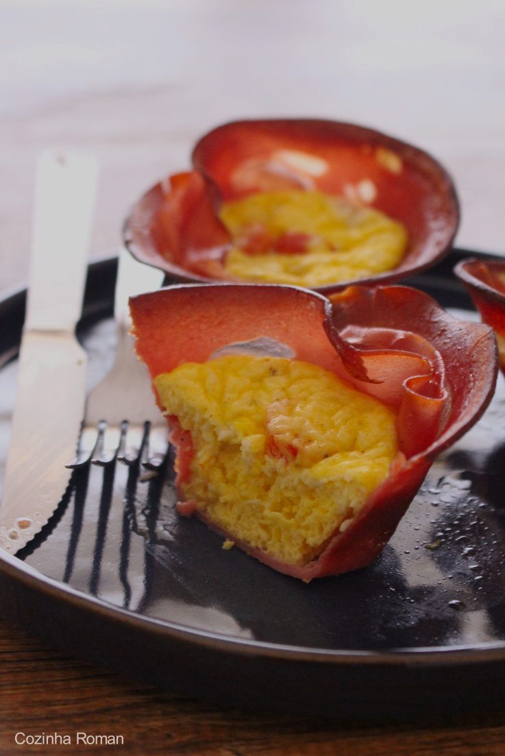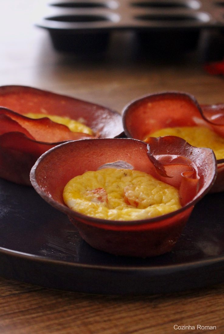 Cestinha de omelete porque essa é a semana de receitas inspiradas por fotos. Essa é mais uma que apareceu em quase todas as redes sociais e quase sempre sem receita. Então hoje ficamos com receita da minha cabeça mesmo.