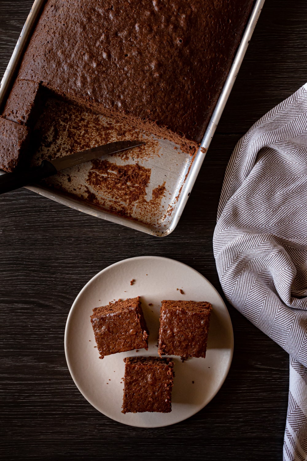Essa receita é daquelas antigas, que toda família tem uma versão, e que parecem não ter uma origem. Aqui ela é conhecida como “o bolo de chocolate da minha mãe”. Primeiro porque é o bolo de chocolate de sempre da casa. Mas também porque ele é a base dos bolos de aniversário que minha mãe fez nossa infância inteira. A quem interessar: dois tabuleiros desse bolo, empilhados com beijinho no meio, e brigadeiro e granulado cobrindo tudo. Tem uma versão atualizada dele aqui.
