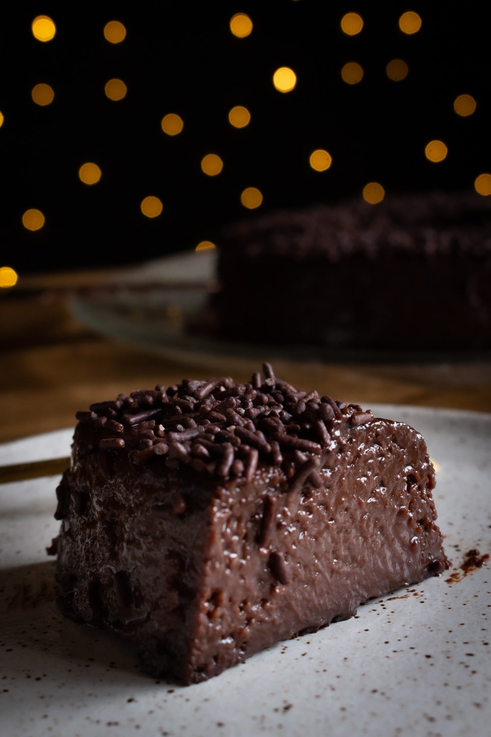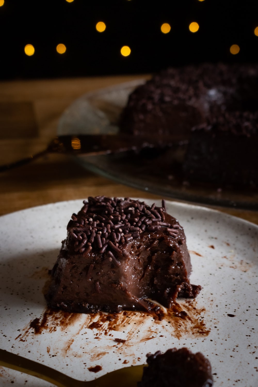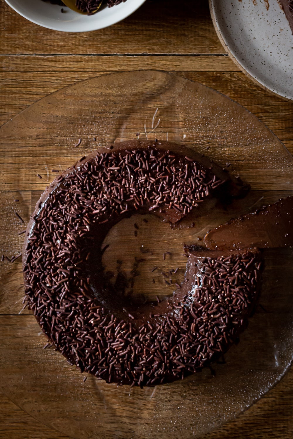 A última mudança foi pequena: antes eu usei raspas de chocolate pra enfeitar, e aqui voltei pro clássico chocolate granulado. É uma questão de gosto e acho que tanto faz qual você prefere.