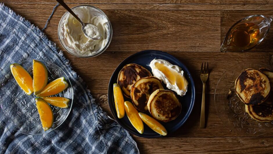 Continue lendoPanquecas de iogurte, super fofinhas, e perfumadas com raspas de laranja para um café da manhã bem especial! E também