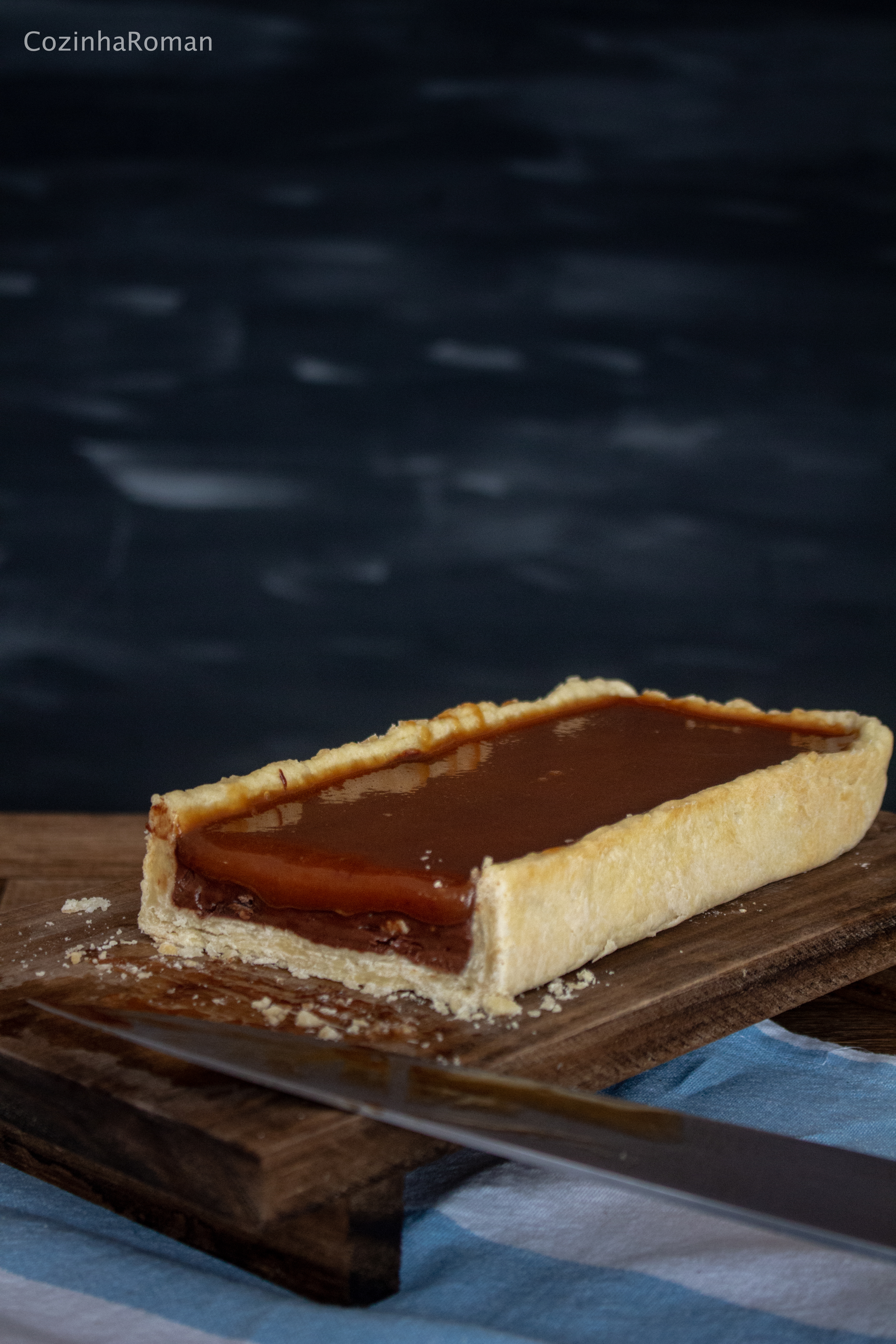 Já vi várias tortas com recheio de caramelo molinho e uma cobertura de ganache bem densa. Elas são deliciosas, principalmente por conta da combinação chocolate levemente meio amargo e caramelo docinho. Mas eu estava atrás de uma textura diferente… E foi assim que essa torta nasceu, como várias receitas aqui, da curiosidade e do improviso baseado no “o que tem na geladeira?”.