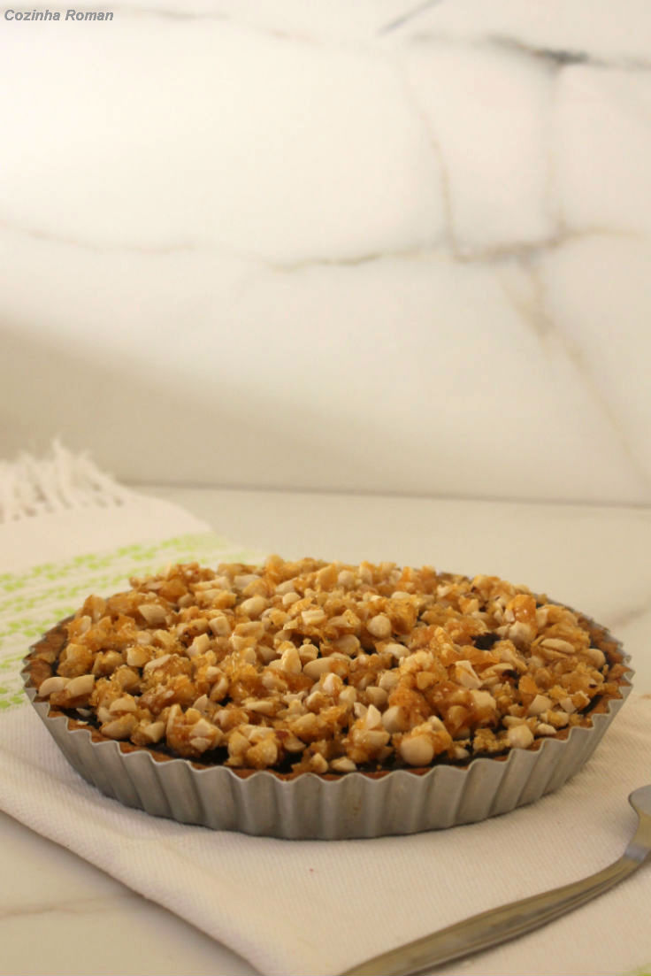 E falando em amendoim, minha mente já estava orbitando em torno desse praliné americano (parente próximo do pé de moleque) pra cobertura. O que mudei foi fazer com o amendoim quebrado e depois ainda quebrar o praliné pra ficar mais delicado. E pronto, assim que nasceu essa torta! Agora é só acompanhar a receita e fazer a sua também!