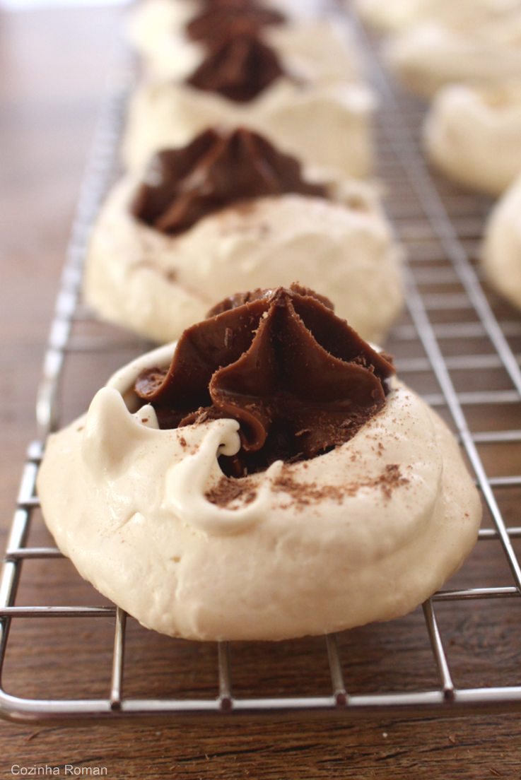 Pavlovas com creme mocha, duas coisas deliciosas juntas em porções individuais pra formar a sobremesa dos sonhos!