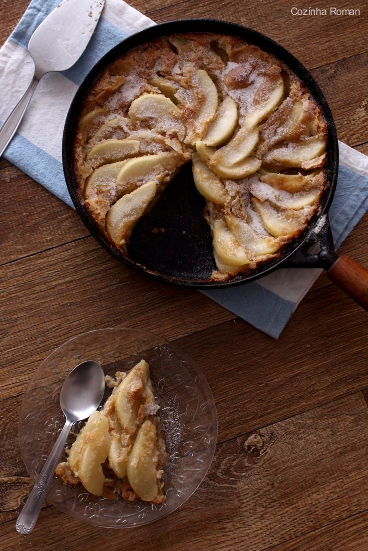 Acabei fazendo alguns pequenos ajustes, e não posso dizer com certeza o quanto eles se assemelham a receita original da Julia. Mas acabei reduzindo um pouco o açúcar da cobertura, e usando 3 peras no lugar de 3 xícaras de peras. E usei rum como birita para macerar as peras. Use a birita que você achar que combina mais; ou a que tiver em casa, já que eu acredito que peras combinam com quase qualquer coisa. No final o aroma das peras é o que ressalta em toda a receita, até porque a massa é muito suave, tanto em sabor quanto em textura. Aliás, pra quem não gosta de canela, ou não tem noz moscada em casa, ambas podem ser ignoradas. É claro que elas dão um toque de sabor na massa, mas eu aposto que seu clafoutis de pera vai ficar muito gostoso sem essas especiarias também.