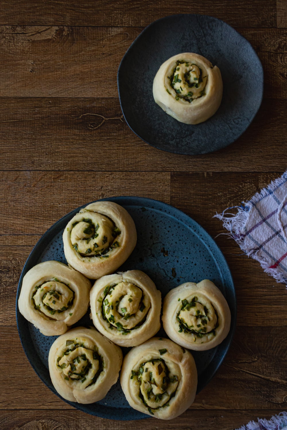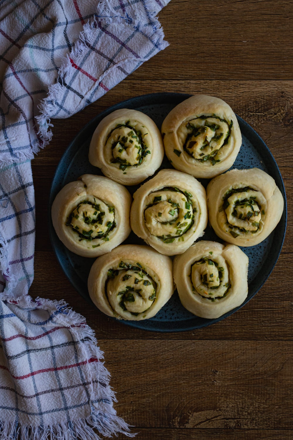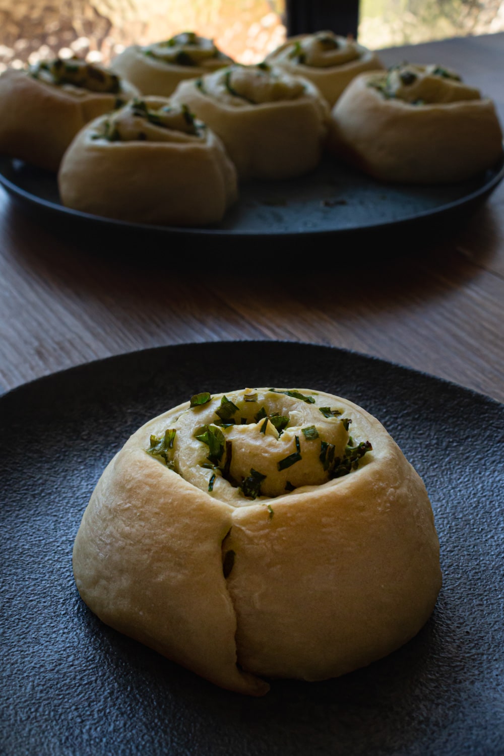 A primeira vez que vi os tais chive rolls (nome gringo desses pãezinhos de cebolinha) foi numa receita francesa, mas a massa era uma pseudo-massa folhada nem um pouco prática. Fiquei com a ideia na cabeça mas fui atrás de outra solução, já que eu queria uma massa mais tipo pão. E aí encontrei essa receita do Will Cook For Smiles, feita com massa fofinha mesmo. Gostei da foto, e fui olhar a receita com calma.