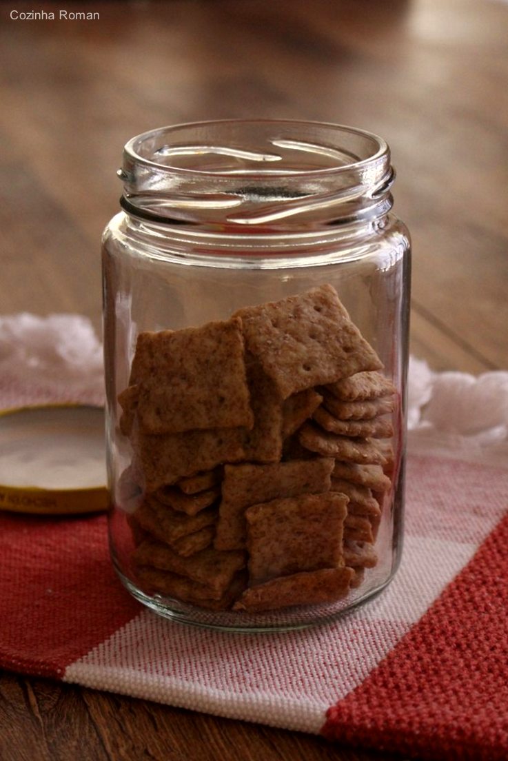 Abra a massa em uma superfície enfarinhada, fure e corte no formato desejado. Transfira para uma assadeira (não precisa untar) e leve ao forno aquecido a 180C até que dourem. Espere esfriar antes de guardar em um pote de vidro.