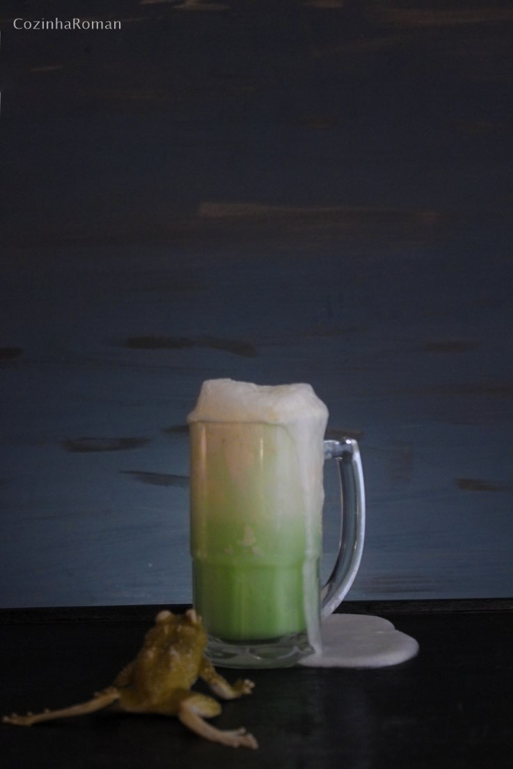 Essa é mais uma daquelas receitas inspiradas por uma foto legal, mas que me decepcionam quando vou ver os detalhes. Essa era feita com suco em pó e refrigerante… Não fui muito com a cara dessa mistura não… Então resolvi apenas adaptar uma receita de float, que já apareceu por aqui, pra conseguir meu drink do pântano.