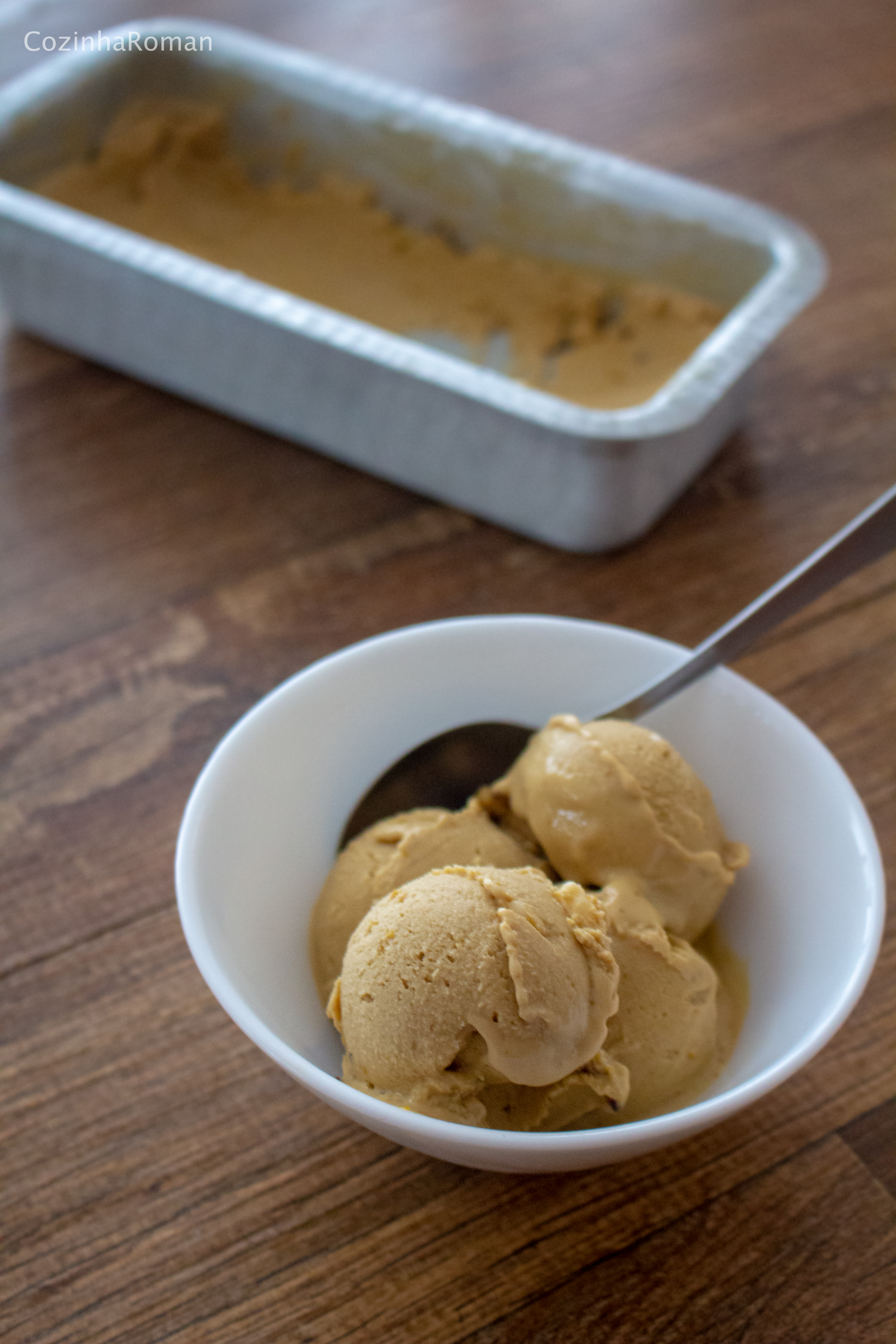 Método com sorveteira: Transfira para um sorveteira e bata até formar o sorvete. Transfira para uma vasilha, tampe e leve ao congelador por mais umas 2h antes de servir.