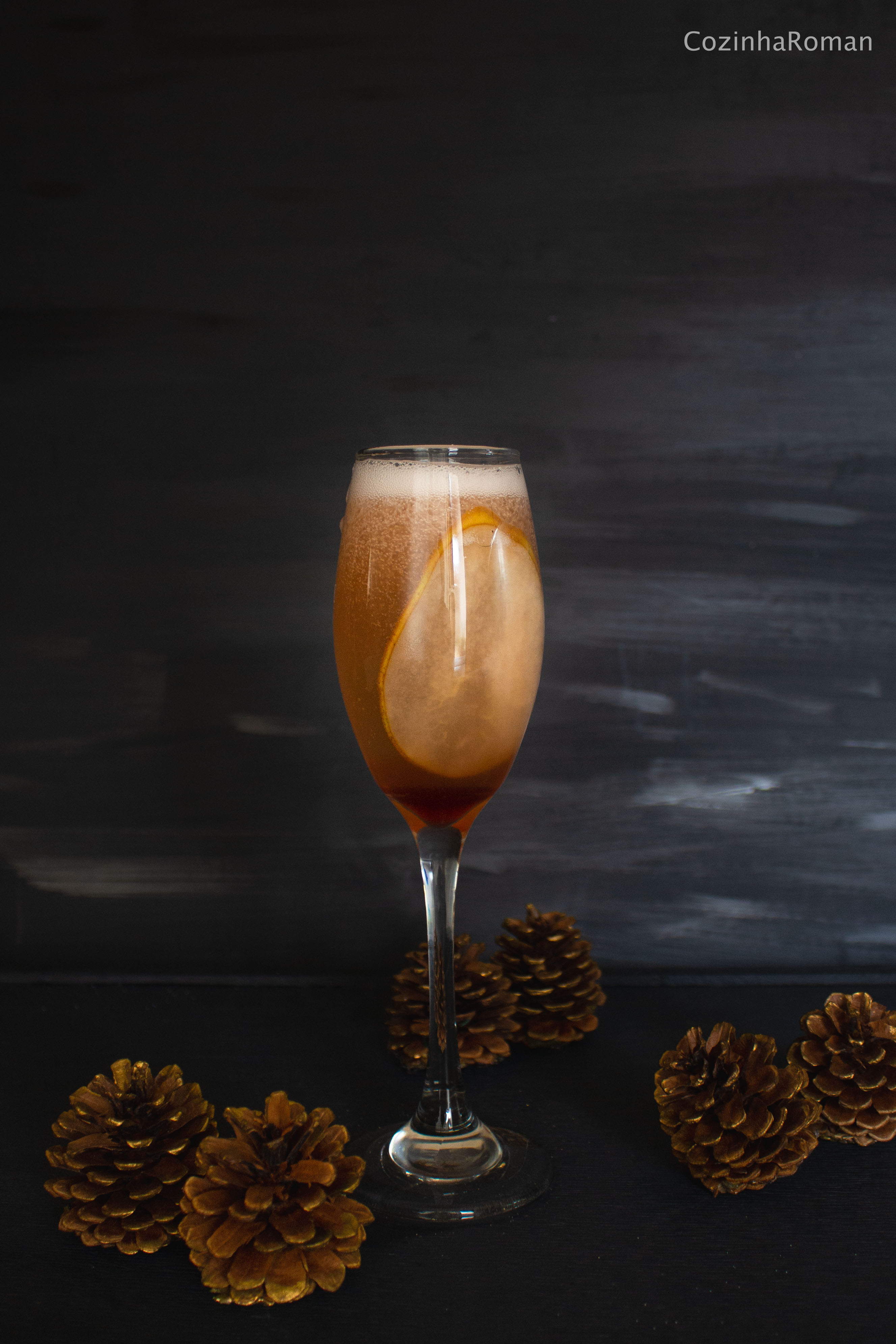 E esse nome estranho? Então, a receita original que inspirou esse drink se chamava Bellini de pera com romãs. Só que não parecia em nada com um Bellini (que é purê de pêssego com espumante). Então fui procurar e achei um tal perini, feito com purê de pera no lugar do pêssego. E achei que parecia muito mais com o drink que tinha criado. Vamos de perini festivo então.