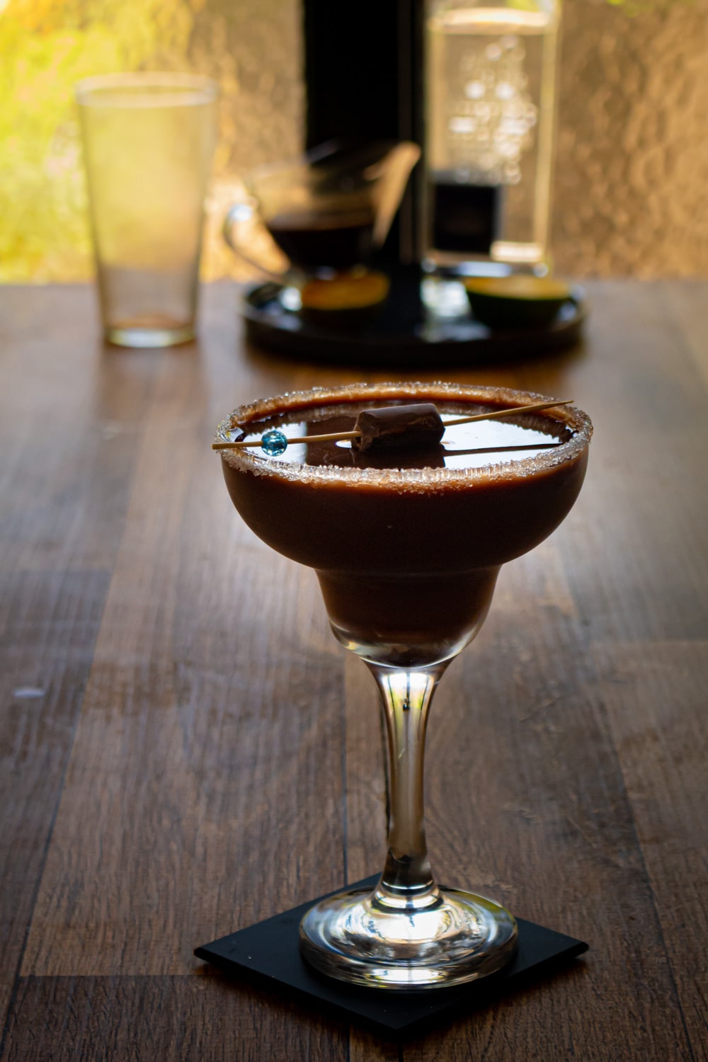 Margarita de chocolate, pra provar que chocolate com limão pode funcionar, e pra garantir que tequila combina com tudo mesmo.