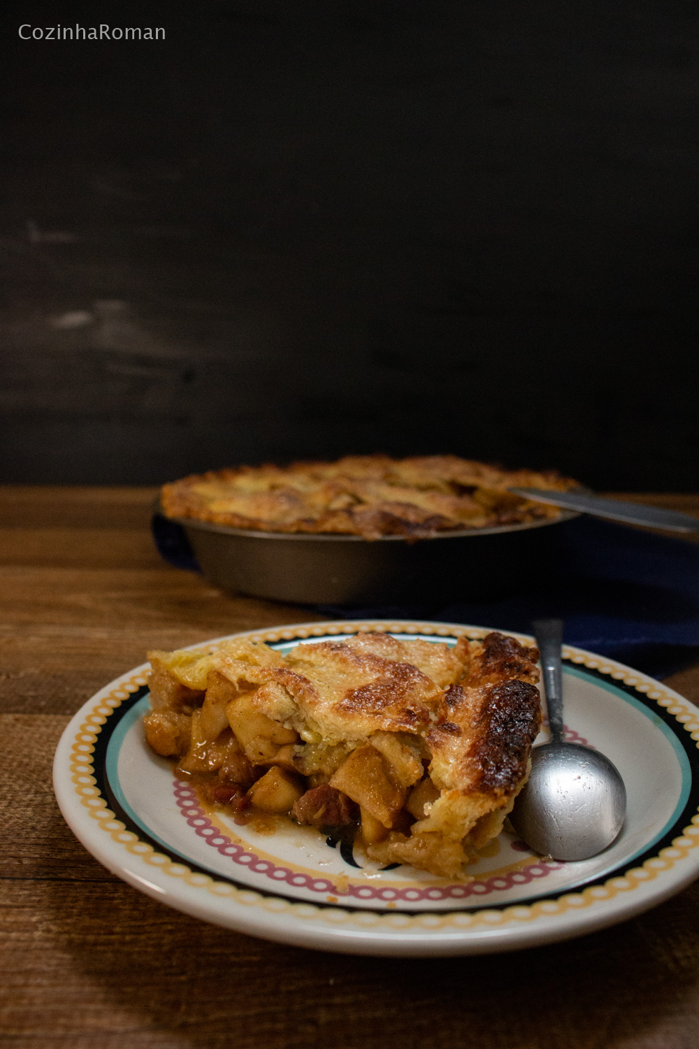 Torta de maçã com bacon e massa com queijo