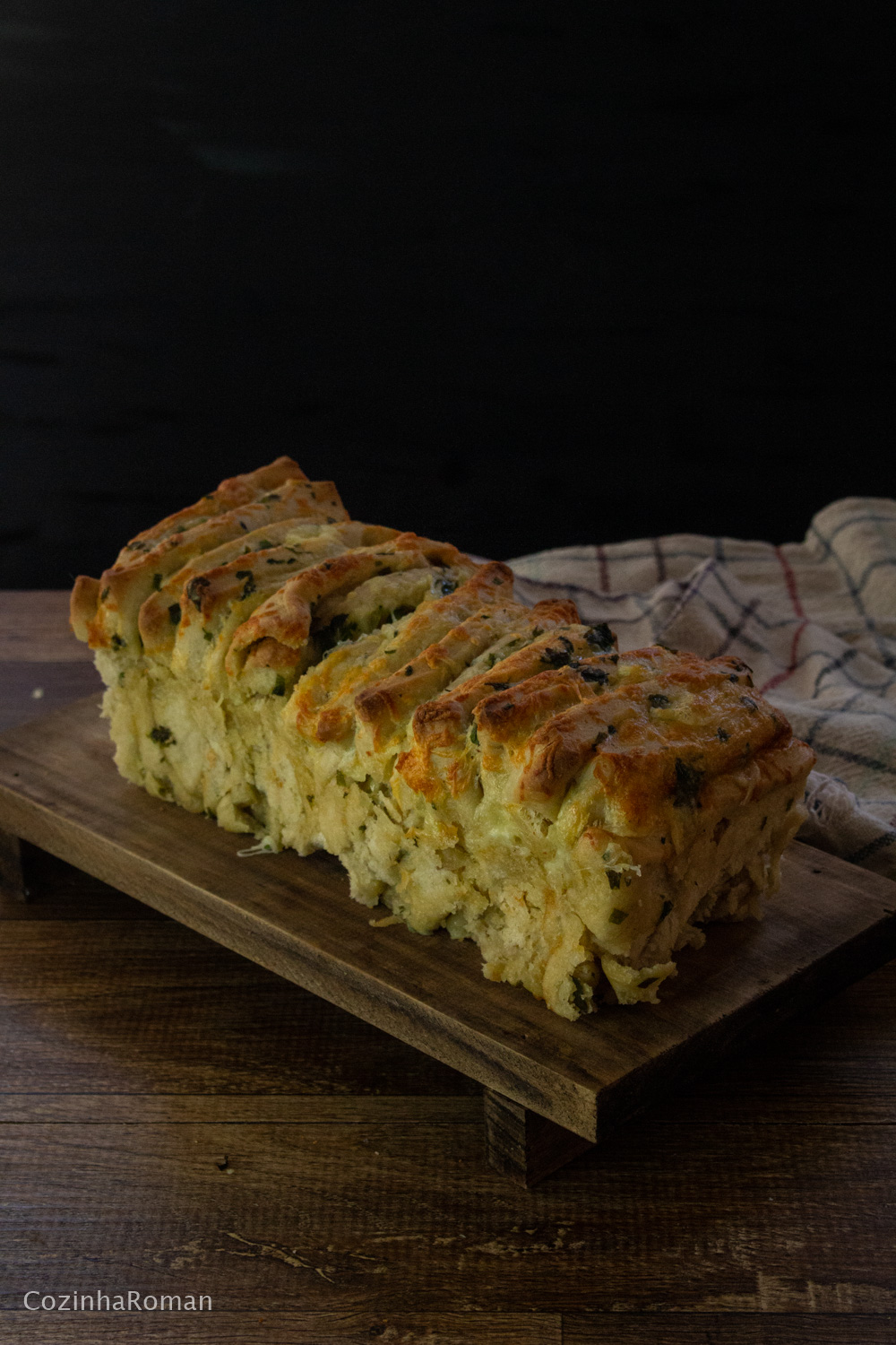 Pão sanfona, a versão mineira do pull apart bread, dessa vez recheada com muito queijo e algumas ervas pra dar um sabor a mais.