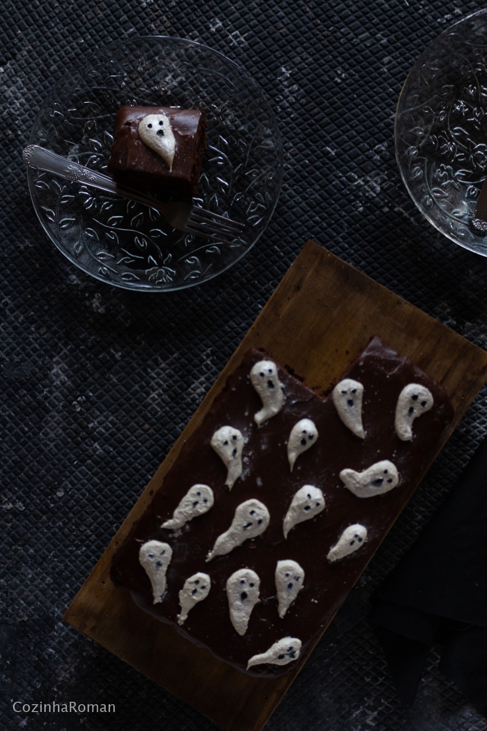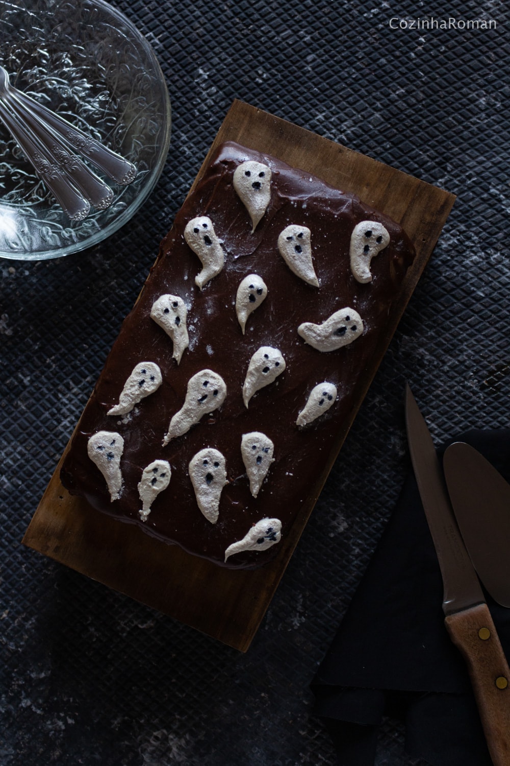 Esse é um daqueles post que não vai ter receita especificamente, e sim uma dica: faça uma cobertura de chocolate e coloque fantasmas nela. Pronto, é isso. Mas calma que eu vou elaborar mais um pouco. Começando pela base.