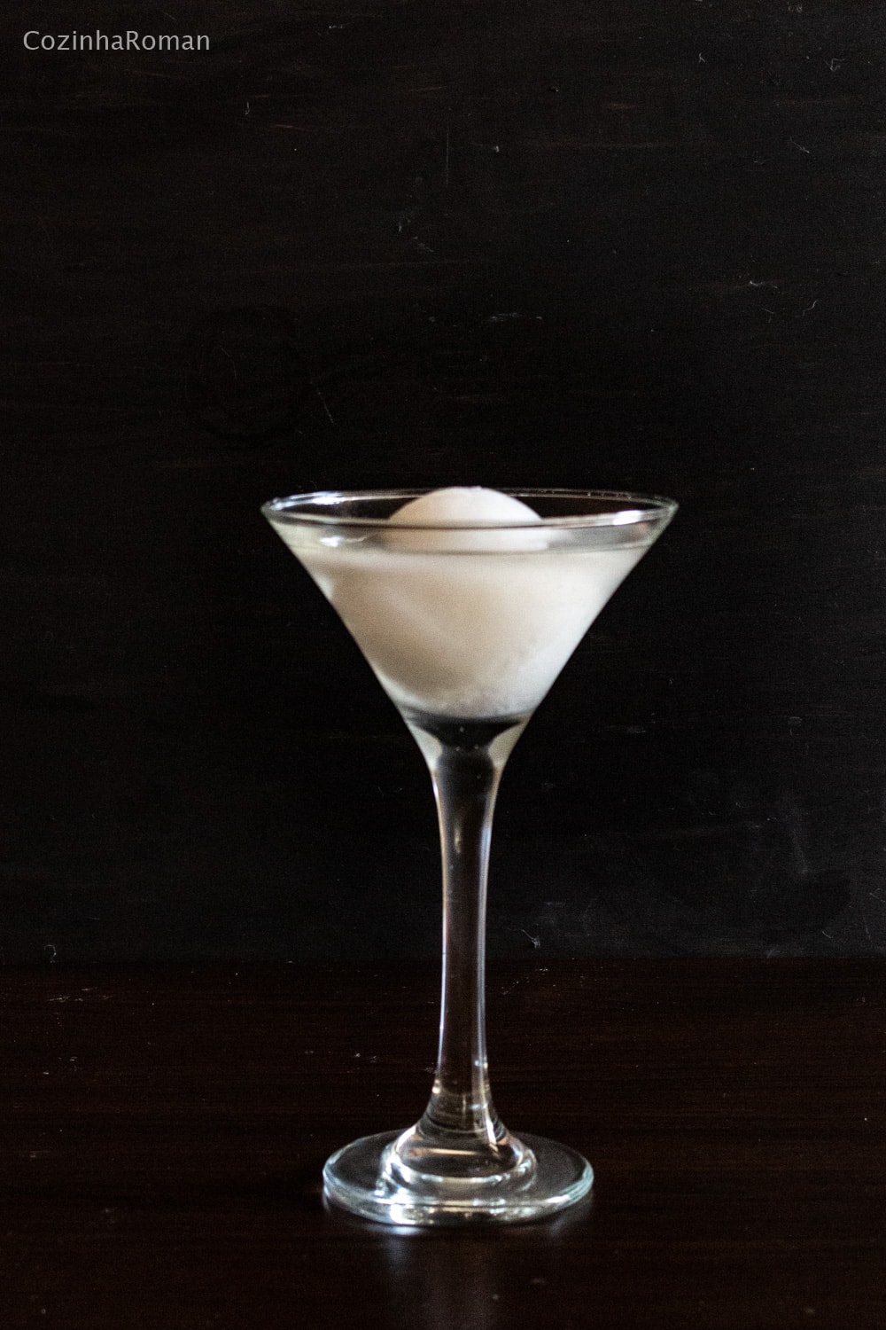 Até porque, é hora de repetir (mais uma vez) o mote do CozinhaRoman: receitas divertidas e gostosas que você possa fazer em casa. Daí você vê a foto e pensa: mas eu não tenho forma pra fazer essa bola aí na taça, como eu faço? Pois é, eu ainda tô tentando resolver essa questão. Por hora ainda não tenho gambiarra pra fazer a tal esfera de gelo sem uma forma específica.