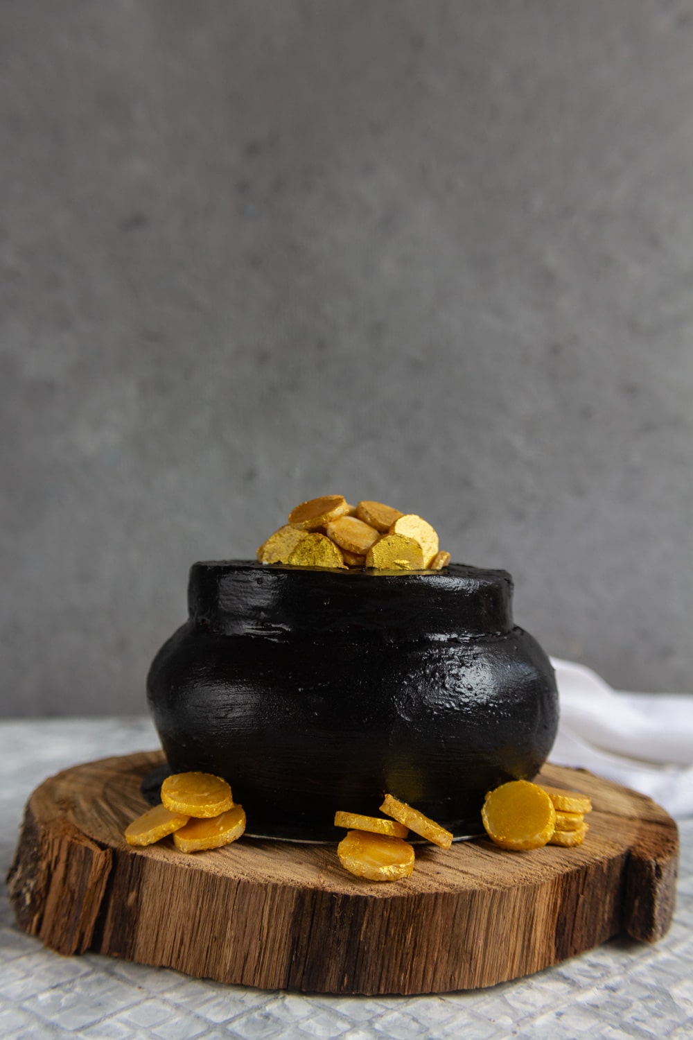 Caldeirão de moedas feito de bolo