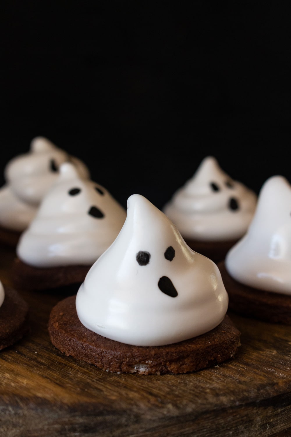 Aqui no Cozinha a gente já teve fantasmas feitos de marshmallow e esses são apenas um passo além, a partir daqueles. É claro que a maior diferença é a apresentação como cobertura de um biscoito de chocolate, mas fora isso tem outras pequenas modificações de um pro outro.