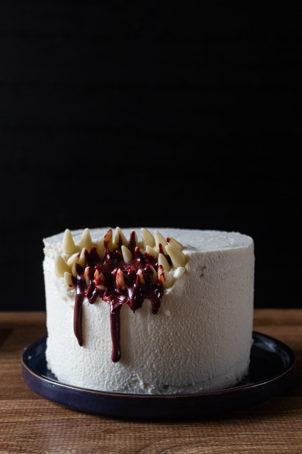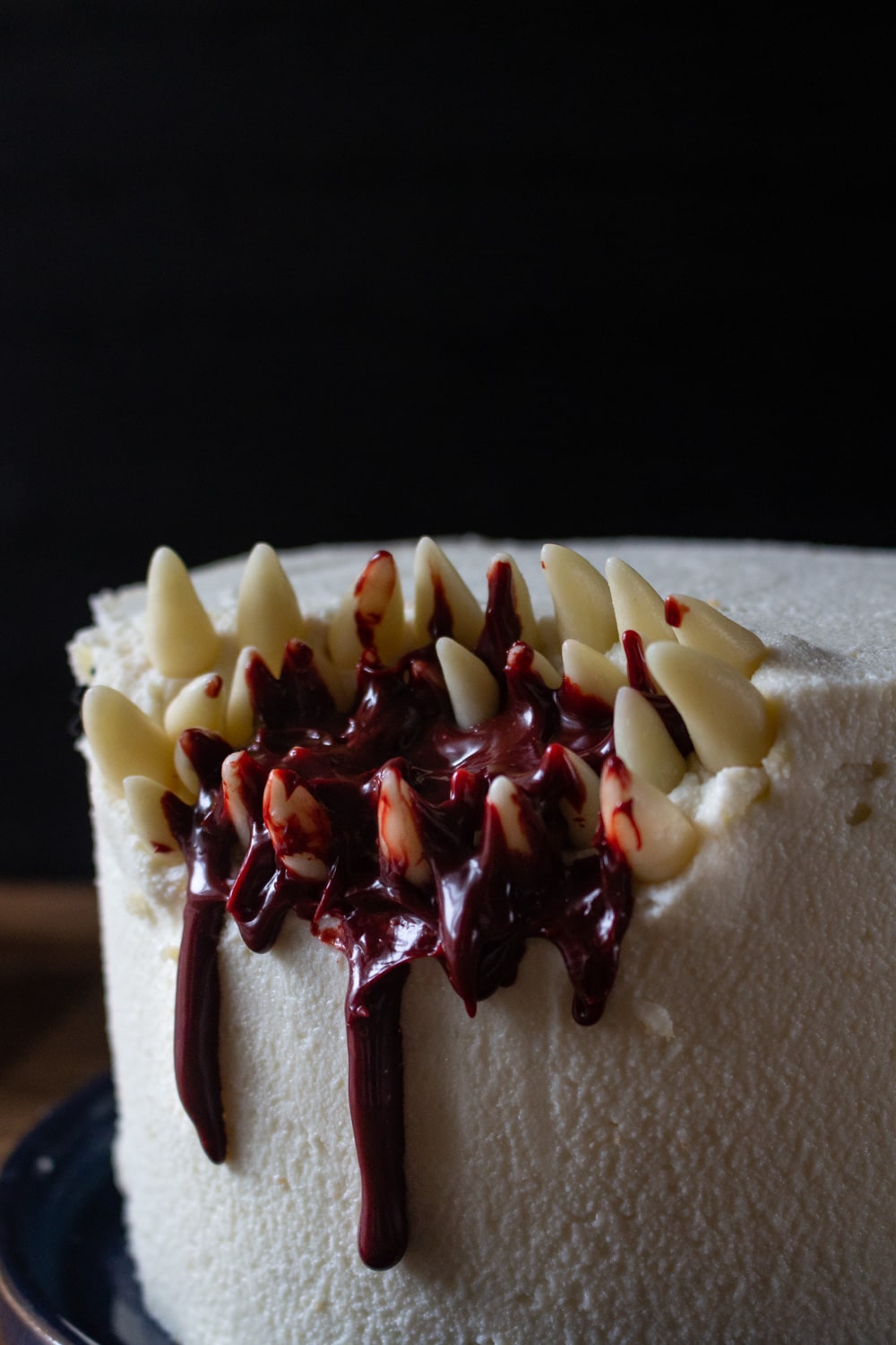 Bolo dentada pode ser qualquer bolo, basta alguns dentes, uma ganache vermelha e já conseguimos transformar um bolo simples em algo aterrorizante.