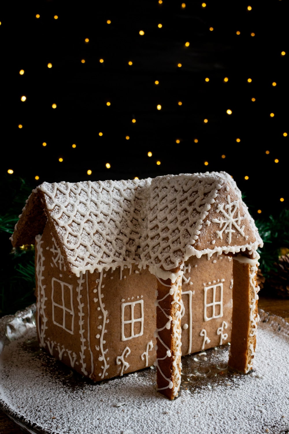 A massa dessa casa de natal é a mesma de todas as casas de biscoito até agora. Eu já fiz algumas vezes com açúcar refinado e deu tudo certo também, mas nunca testei outras mudanças. E por isso mesmo que mantenho a mesma receita desse link. Mas a verdade é que dá pra fazer essa casinha com qualquer receita de biscoito que mantenha o formato no forno. Então se você já tem uma receita de biscoitos que fica firma depois de fria, mantém o formato no forno e, o mais importante, você gosta, provavelmente vai dar pra fazer com ela também.