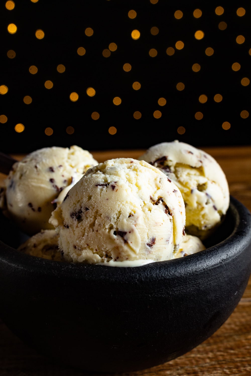 Sorvete de menta com pedaços de chocolate feito com a planta de verdade e sem corante nem saborizante comprado pronto.