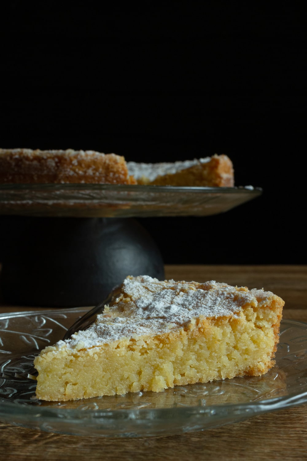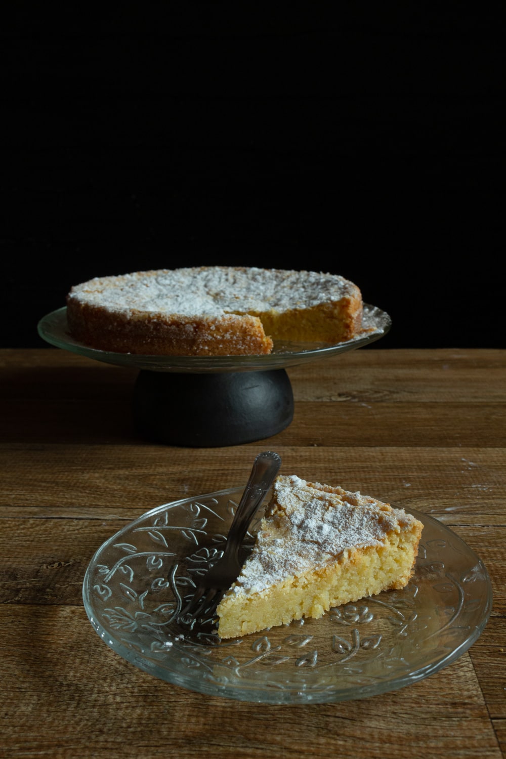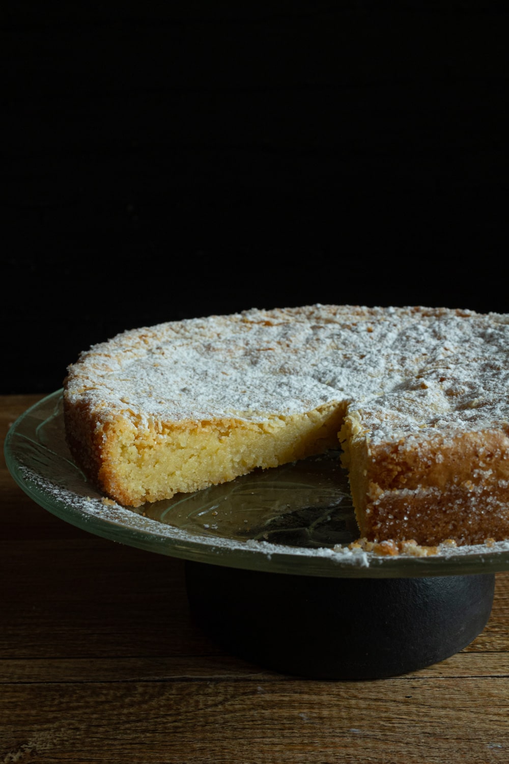 Outra coisa opcional, e que eu pulei, é o acompanhamento. Vi muitas menções ao bolo servido ou com numa colherada de chantilly ou com frutas vermelhas. São duas coisas deliciosas, mas eu acho que prefiro o bolo só com a chuva de açúcar de confeiteiro mesmo. Vi que esse bolo é comumente servido em cafés e acho que a versão mais simples combina mais com uma xícara de café, ou chá. Mas de novo: seu bolo, você serve como quiser. Aliás, se quiser servir quentinho com sorvete, eu acho que pode funcionar também.
