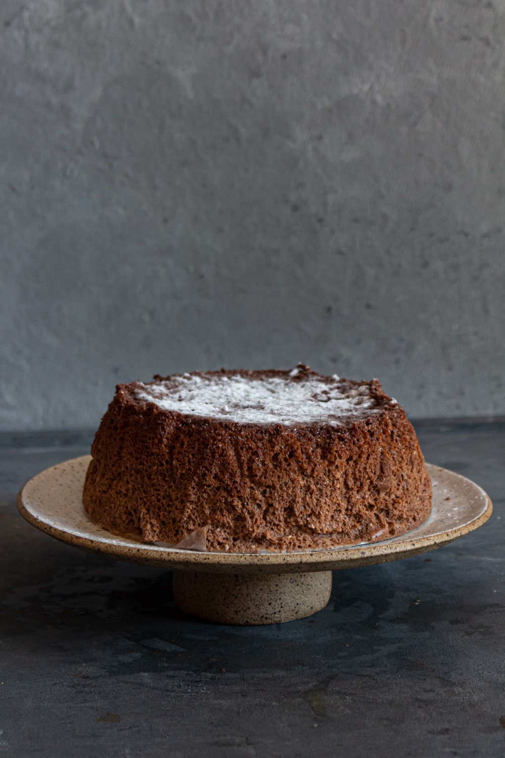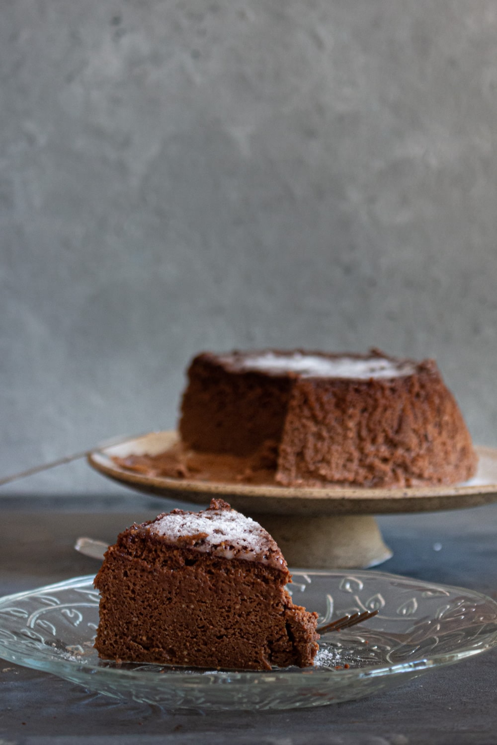 Cheesecake Suflê de chocolate, feita com três ingredientes e resultado do improviso e da adaptação de uma receita gringa.