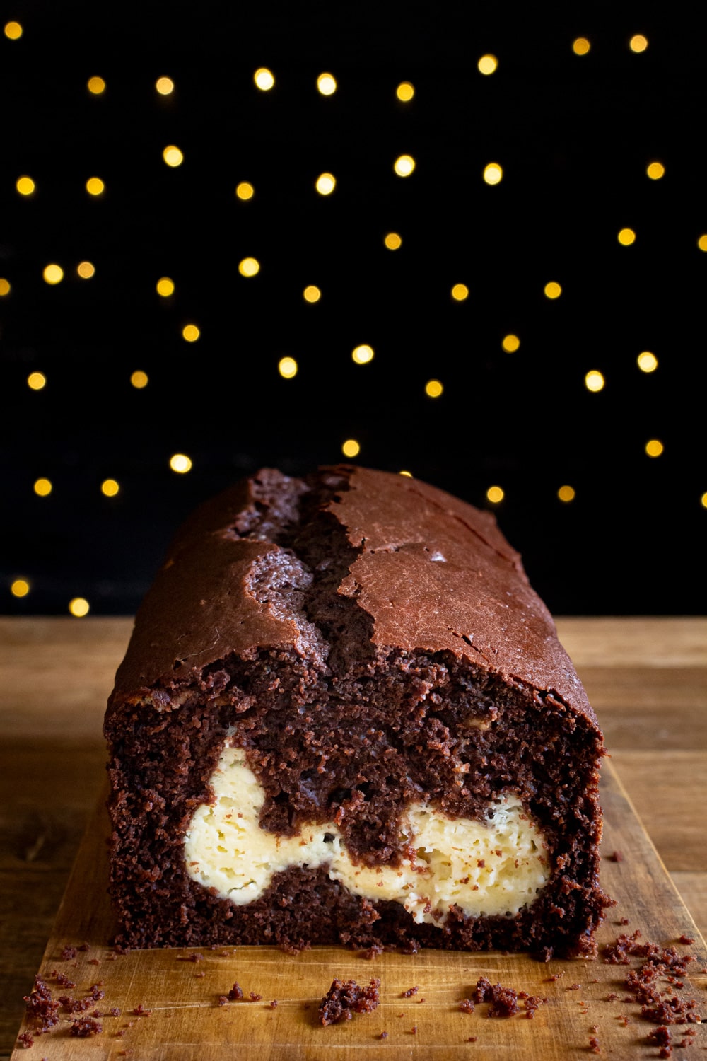 Chocolate com cream cheese, não exatamente misturados, mas formando um bolo marmorizado muito do simples e gostoso.