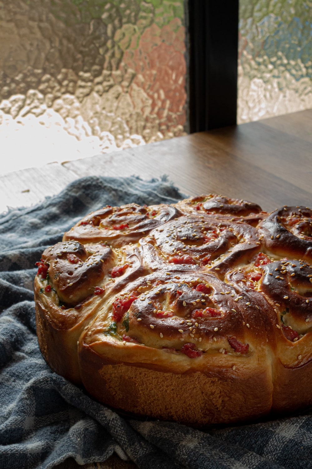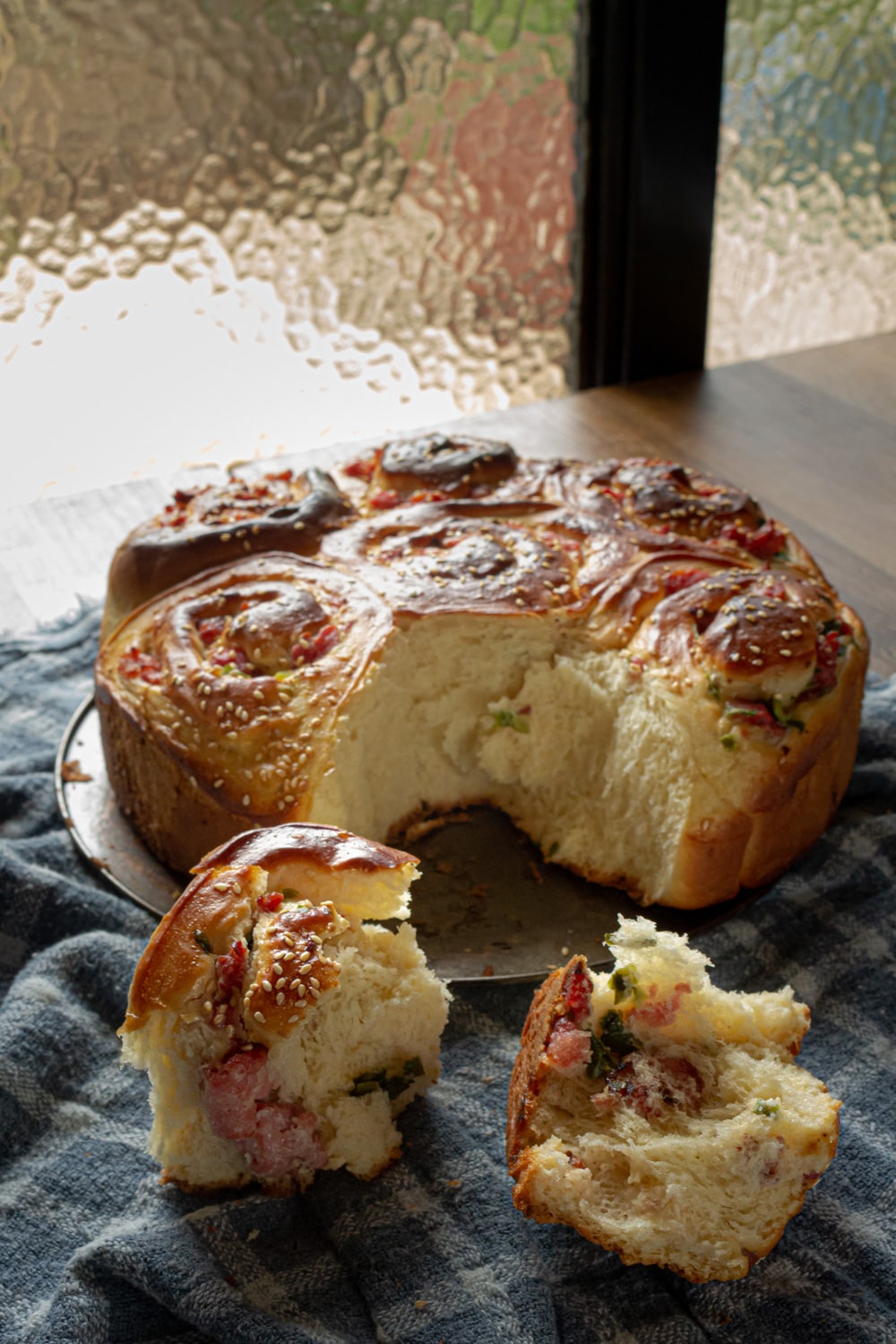Pão de linguiça em formato de caracol inspirado nos cinnamon rolls, mas em versão salgada e com massa antiga aqui do Cozinha.