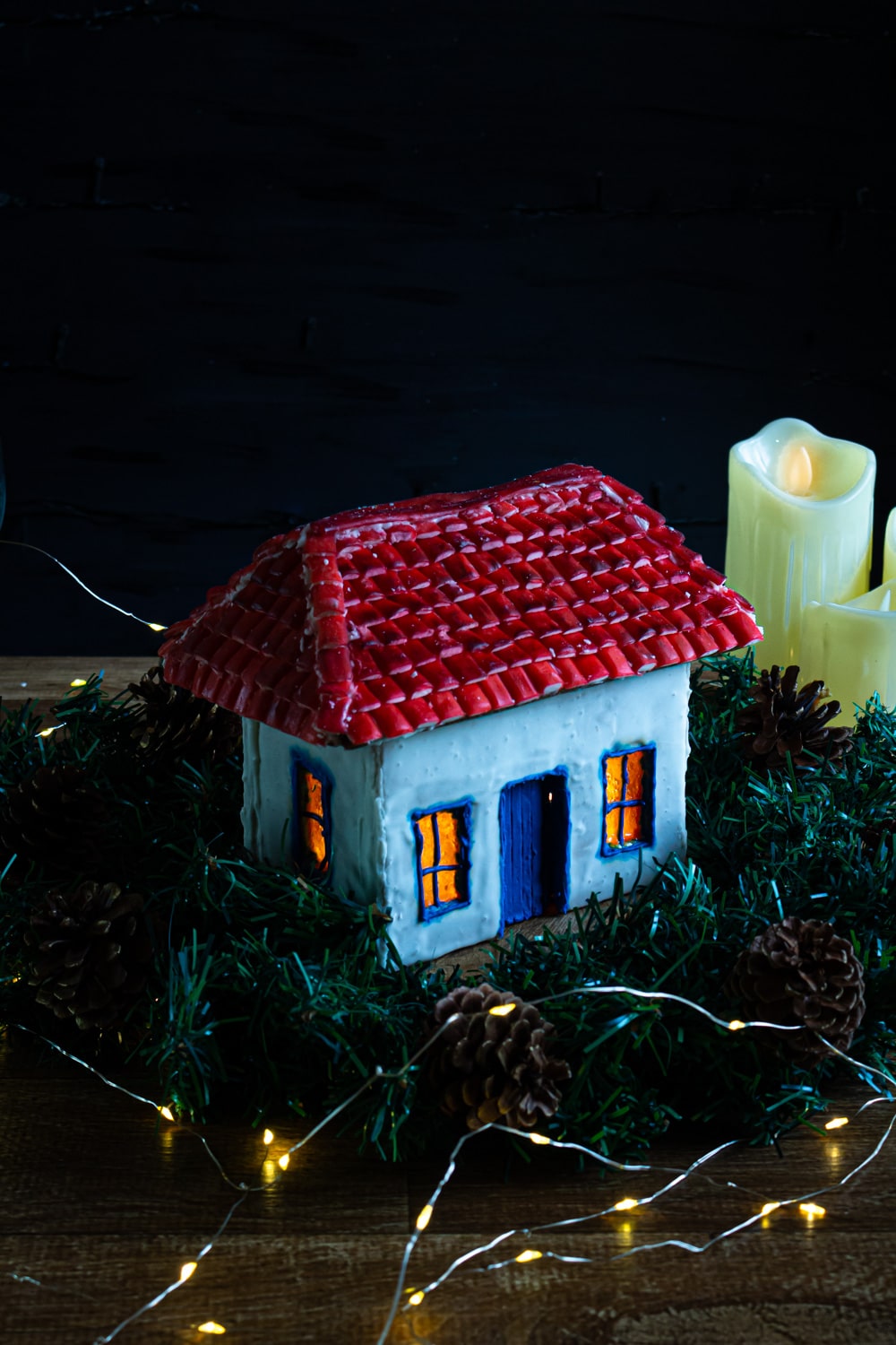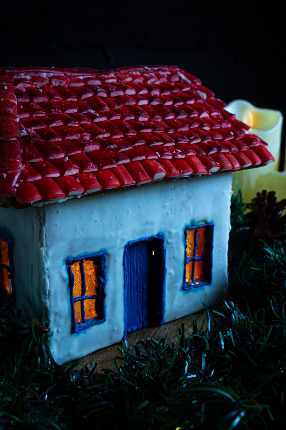 E a culpa do meu perrengue foi toda minha: eu sabia que era mais fácil decorar as paredes da casa antes de colar; e isso é verdade. Mas achei que o mesmo valia pro telhado. E aí ele quebrou e caiu 3 vezes antes de eu conseguir manter a casinha de pé. Isso tá arrumado na receita abaixo e o passo a passo foi escrito pra você evitar meus erros. Mas fica a dica: pra essa casa mineira primeiro você monta o telhado, daí confeita ele, e só então coloca no topo da casinha.