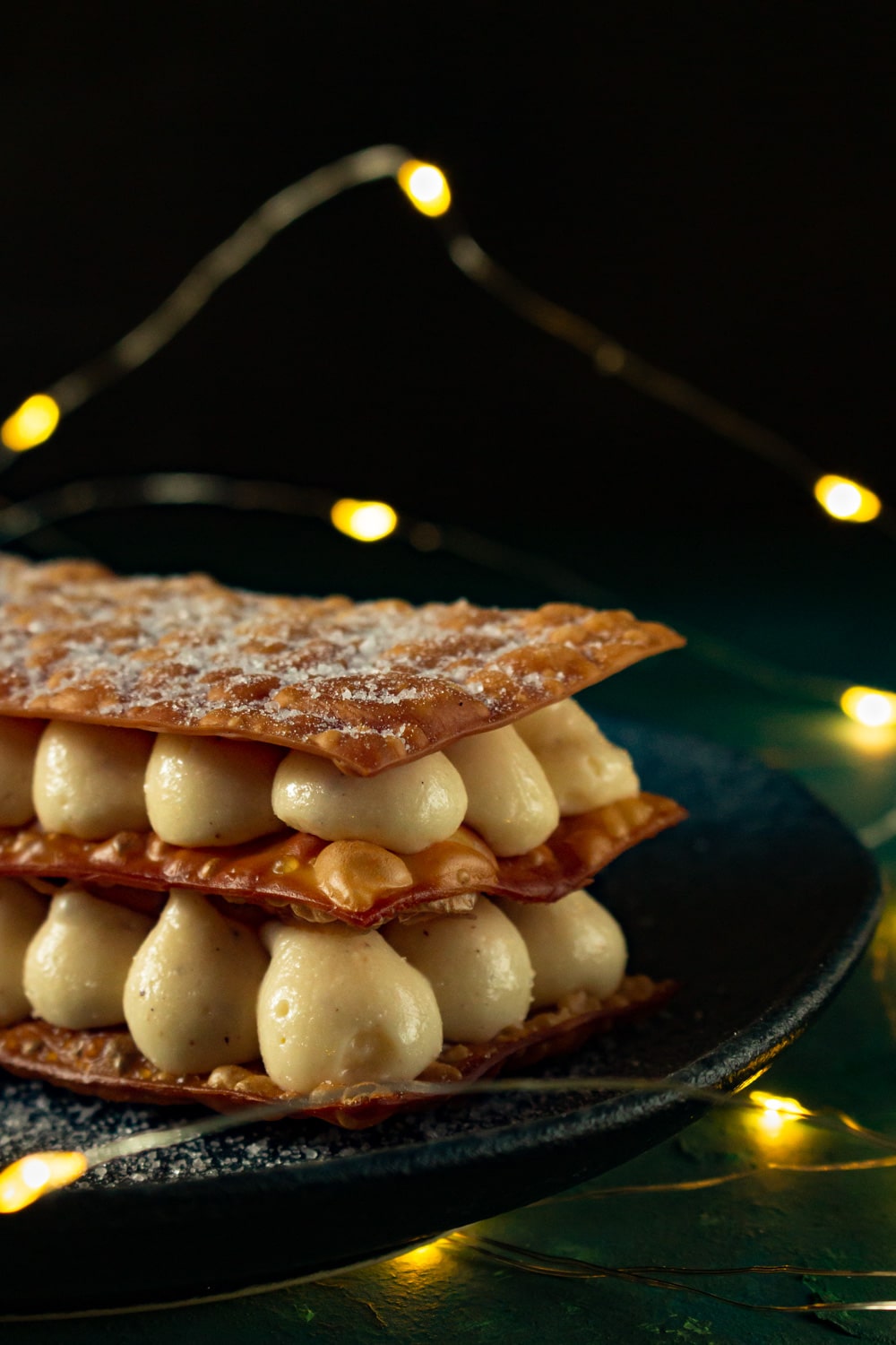 PS: depois que terminei esse texto achei bom pontuar que eu usei um creme que tava na minha cabeça e que gostei muito quando experimentei. Mas muitas outras coisas podem virar recheio aqui, desde o tradicional creme confeiteiro até um simples (mas delicioso) doce de leite, caseiro ou não. Também existem versões de mil folhas com mais de um recheio, seja misturados na mesma camada, ou cada andar um sabor. Nesse caso a sua imaginação é o limite.