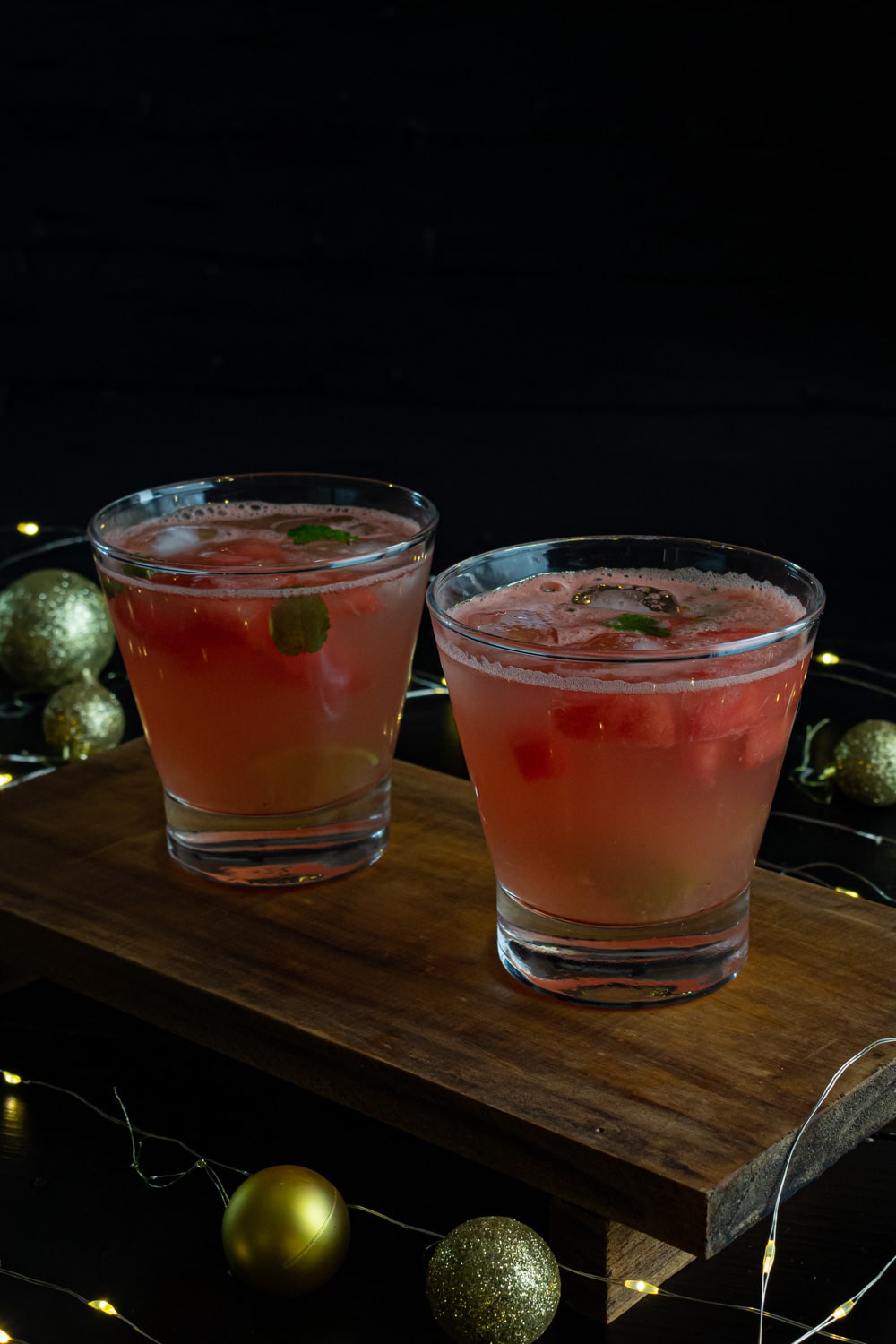 Ponche de Melancia dum jeito que pode servir com e sem álcool pra todo mundo poder beber (quase) a mesma coisa!