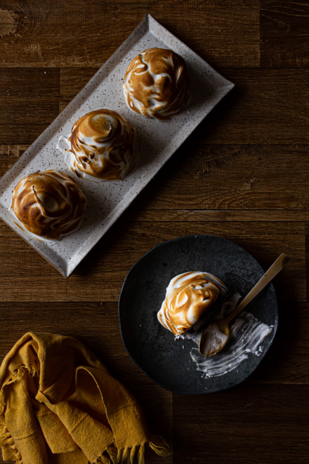 O que falta falar? O merengue! Isso é papo antigo mas acho que sempre vale a pena repetir: eu não tenho problemas em consumir claras cruas, então só bato com açúcar e uso. Se você não gosta tem jeito: mistura as claras com o açúcar e leva ao banho-maria, mexendo até o açúcar dissolver, e então retira do calor e bate normalmente. Opções veganas? Nunca testei tostar merengue de aquafaba, porque sempre apanho do merengue de aquafaba. Mas assim que eu experimentar venho aqui contar.