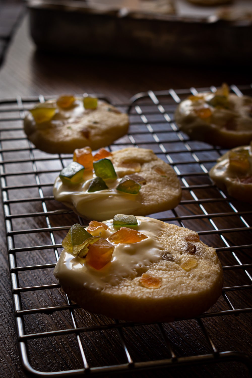 Por último, o sal. A receita original leva cerejas azedas na cobertura e isso faz um contraponto legal com a doçura do chocolate branco. Mas as frutas cristalizadas que eu usei são apenas doces, então ficou tudo doce demais. Depois de prontos eu adicionei uma pitada de sal por cima do biscoito e gostei muito mais do resultado! Por isso indiquei isso na receita escrita, mas esse passo não aparece no vídeo. Falando em vídeo: como eu disse nele, se você tem hábito de usar flor de sal, essa é uma boa opção.