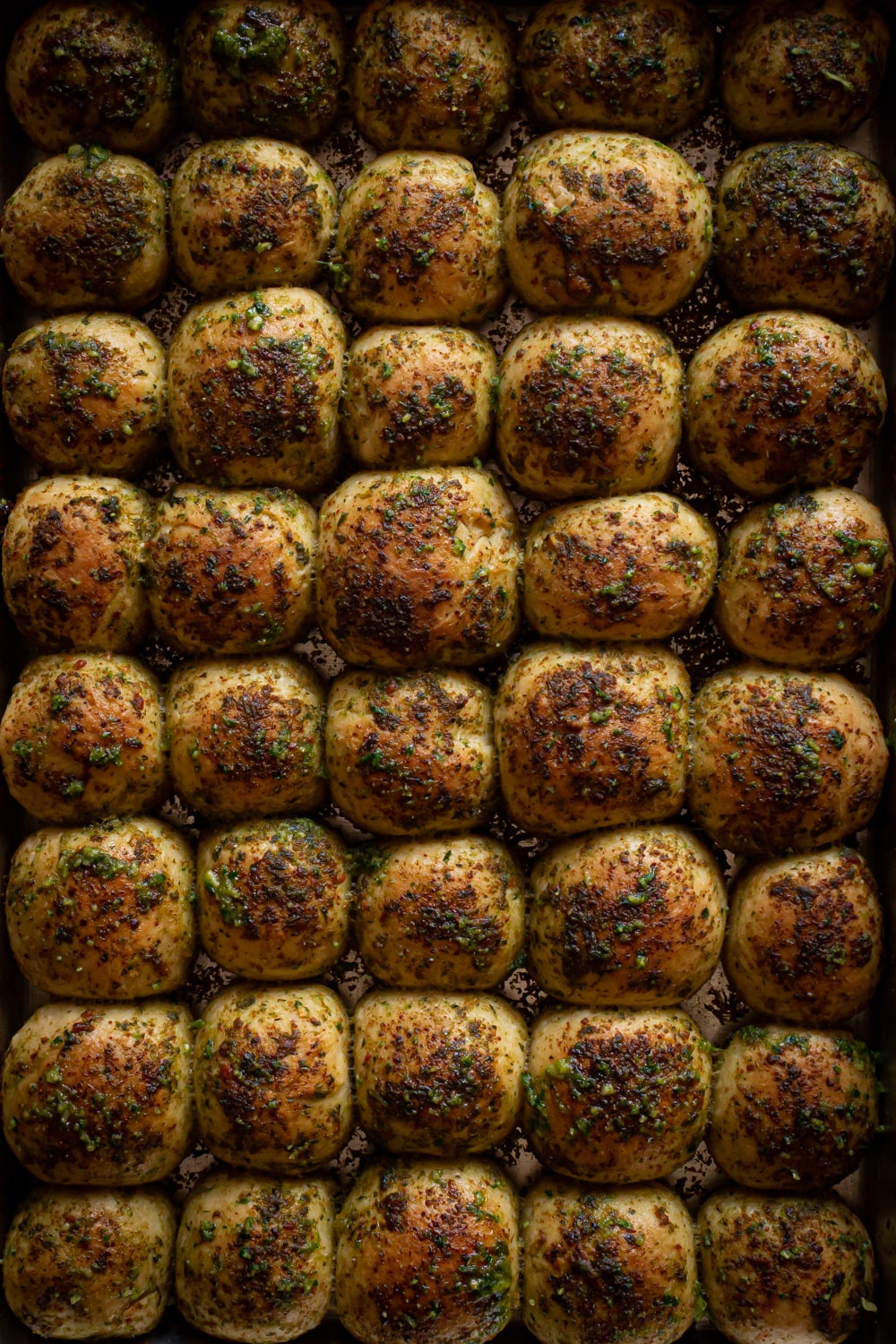 Pãezinhos bem fofos e cobertos por um molho verde bem temperado inspirado no pesto era o que eu tinha em mente quando cismei com essa receita.