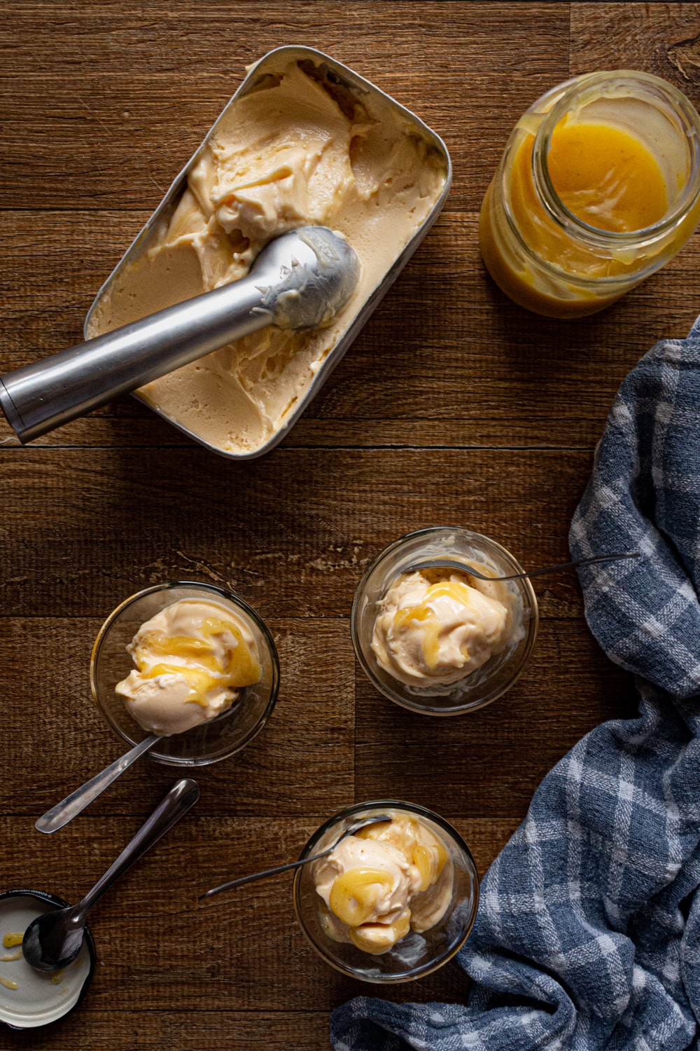 Sorvete mesclado, com que você quiser pra ser sincera, mas nesse caso com curd de limão pra ter o contraste do azedinho com o doce do creme!