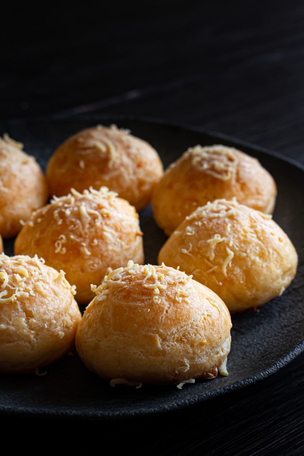 Gougères são bolinhos assados feitos de uma massa tipo choux misturada e coberta de queijo. Por isso mesmo são conhecidos como “pães de queijo franceses”.