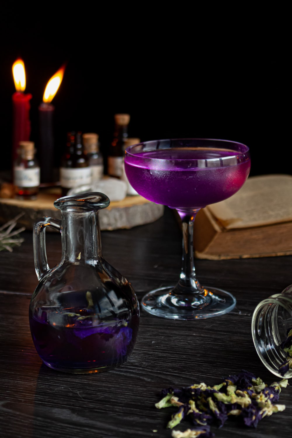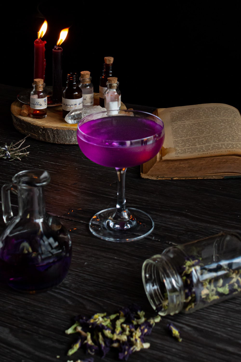Por último, no dia da gravação a gente escolheu servir esse drink numa taça rasa, porque a ideia era que ele mudasse de cor num estalar de dedos. Mas vale lembrar que num copo cheio de gelo essa mudança se daria de forma gradual e mais perceptível. Fica a dica pra quem quiser gravar aquele vídeo pras redes sociais.