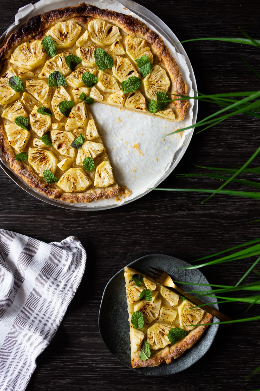 A ideia dessa torta veio de um vídeo da Claire Saffitz com a Natasha Pickowicz onde elas fazem uma galette de abacaxi com folhas de shisô. Como aconteceu com a torta de manga que virou post recente por aqui, eu fiquei com vontade, mas tive que fazer algumas adaptações.