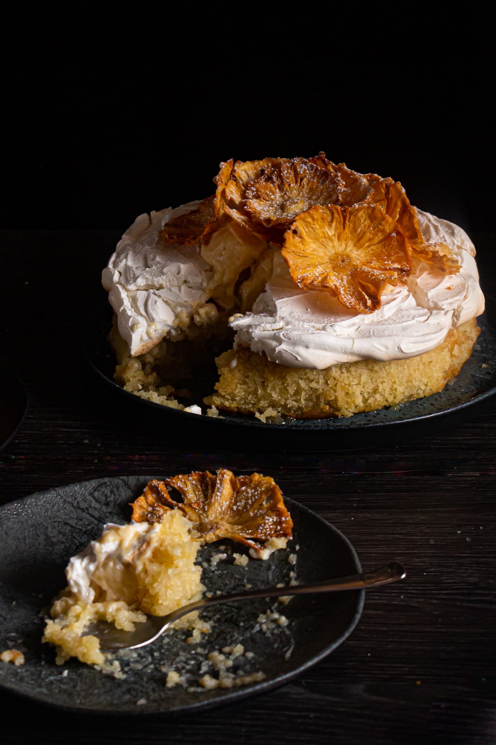 Mas é claro que essa viagem acabou pedindo muitas mudanças, tanto pela disponibilidade dos ingredientes quanto pelo meu gosto mesmo. Pra isso eu me inspirei no meu bolo de limão com coco e abacaxi, porque adoro essa combinação de sabores. A base da receita original era uma massa de torta recheada com frangipane, mas aqui virou um bolo de coco encharcado de calda de abacaxi. Como o sabor do coco é bem suave, ele acaba virando um bolo de abacaxi mesmo.