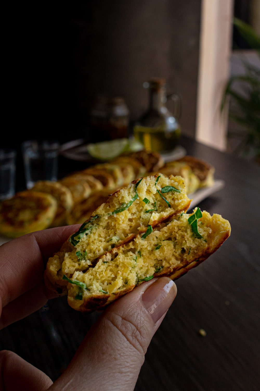 Panqueca de fubá com couve, bem temperada, ideal pra virar petisco mas que faz bonito como almoço também!